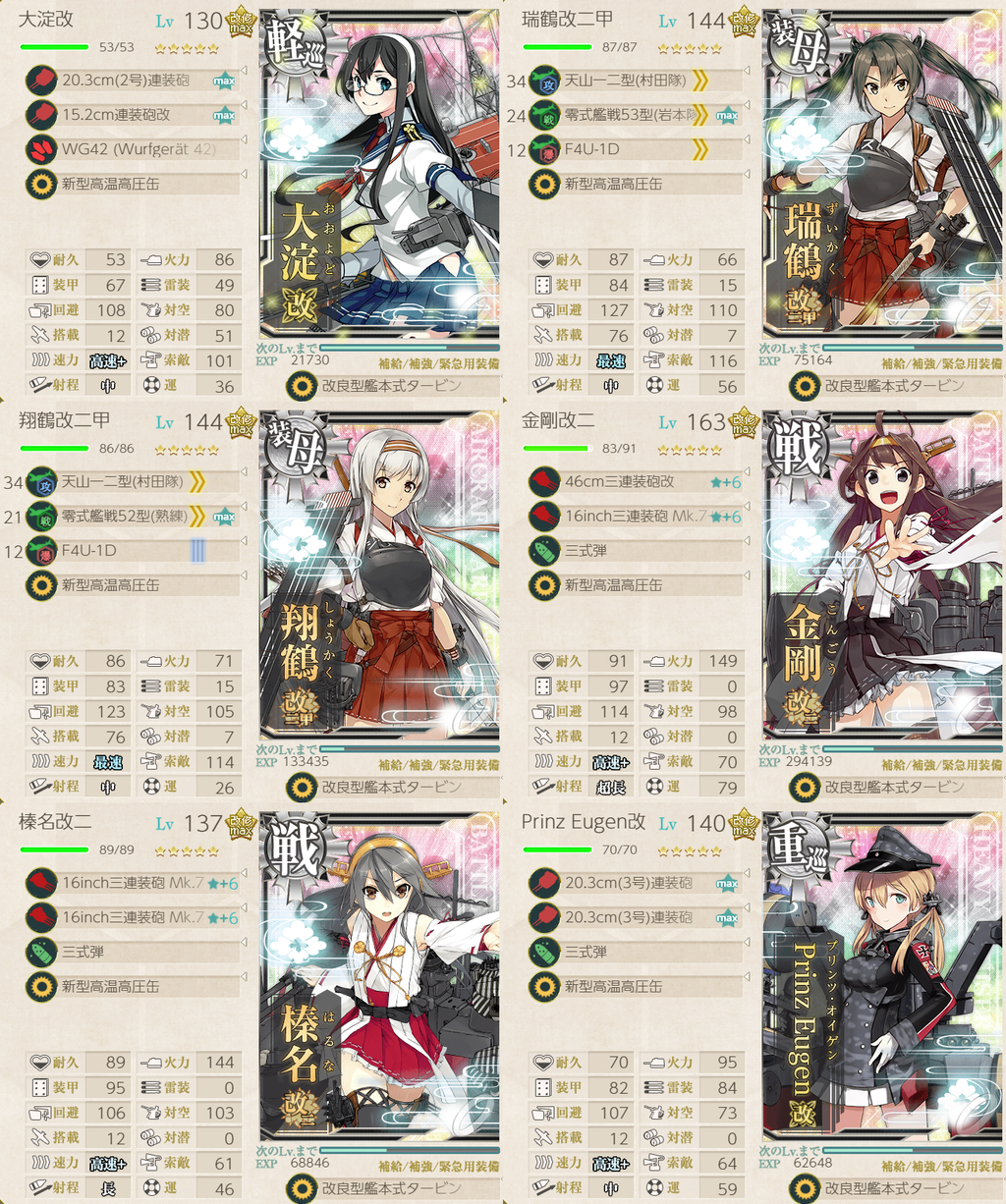 一発でしたが非常にあやしいクリアの仕方だったので、大淀さんを替えたり空母を増やして艦攻を増やすなりしてください。(場合によっては高速+以外のルートも視野に)