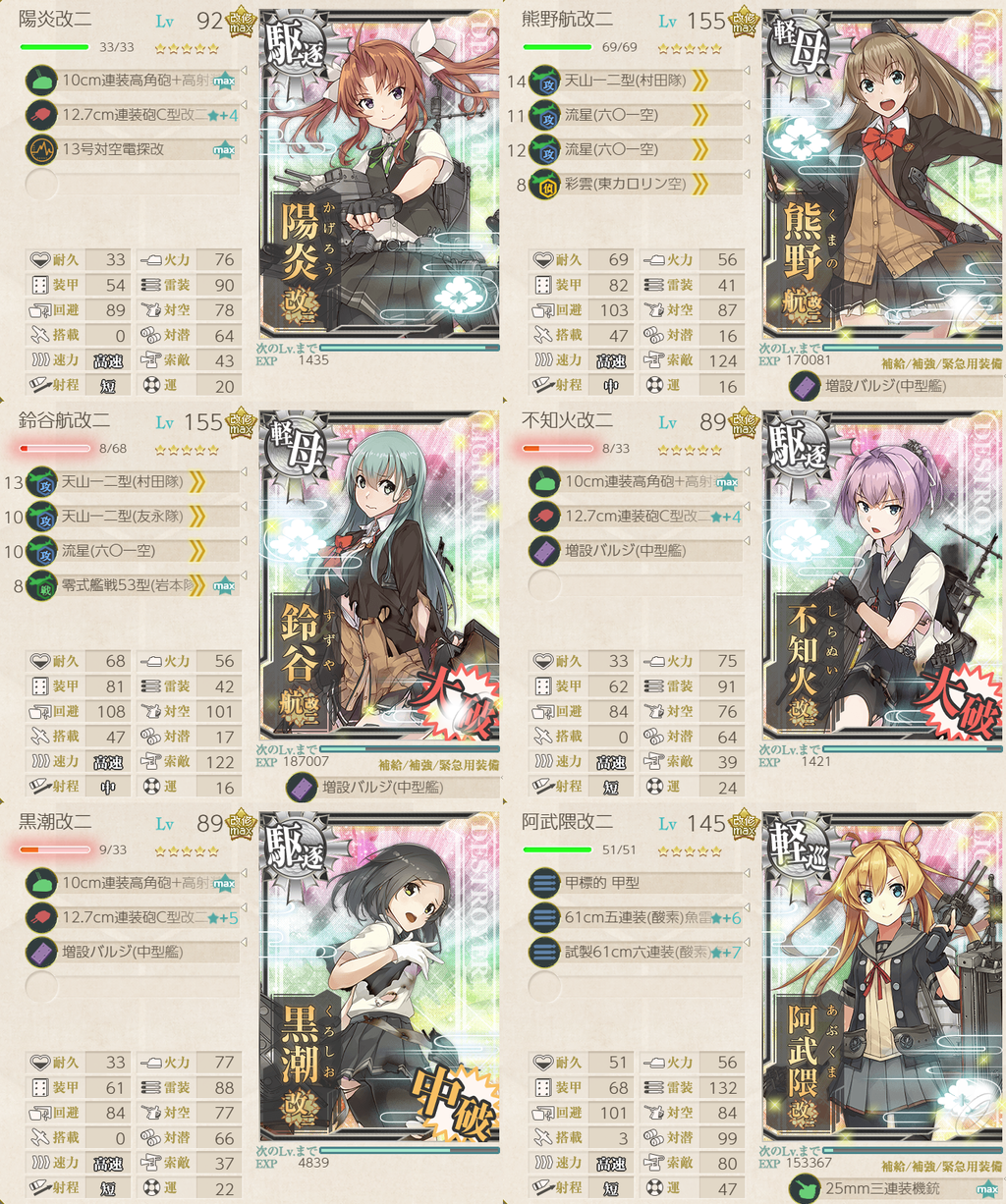 軽空すずくま+陽炎型改二3隻の編成例です。
