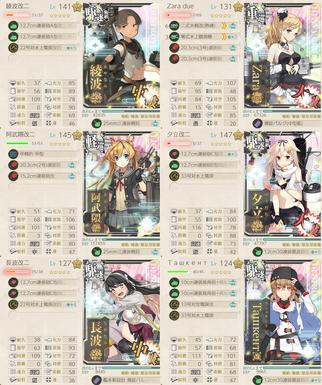 軽巡枠に阿武隈改二でなおかつタシュケントを使わない編成ということで33号の改修も必要になりました。