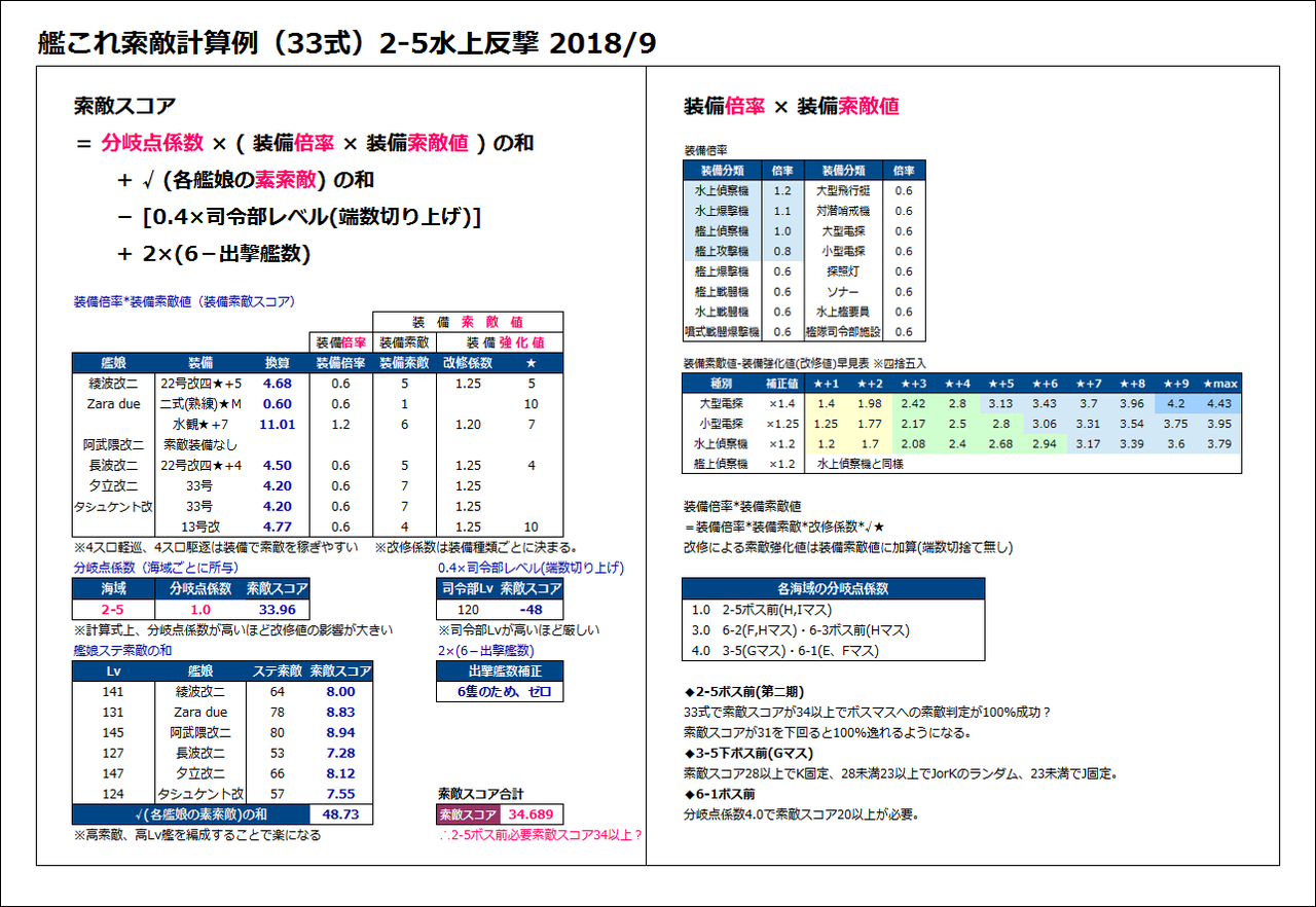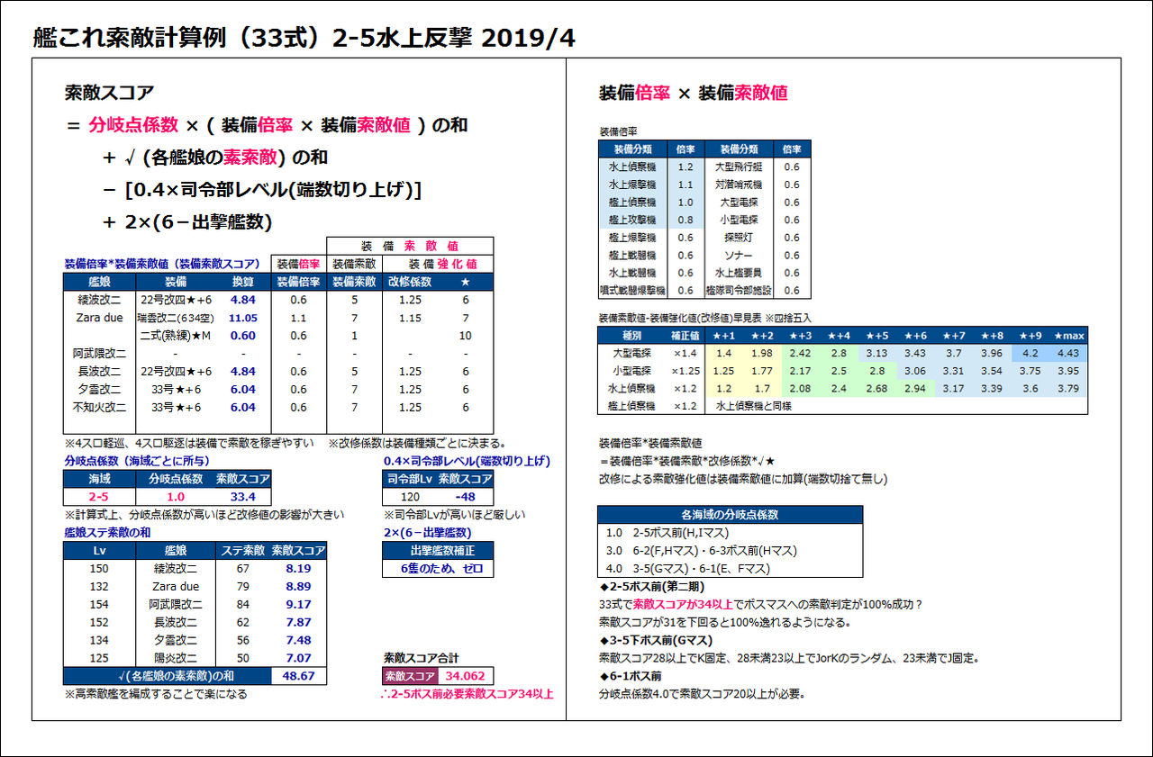 ※33式の分岐点係数1.0における索敵スコア34.0以上でボス固定?