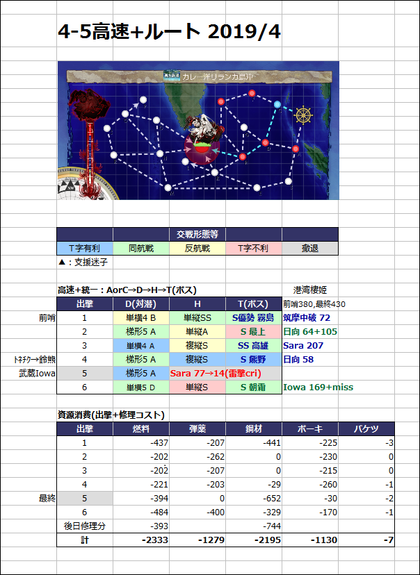 艦これ第二期、4-5海域を高速+ルートで攻略する記事です。