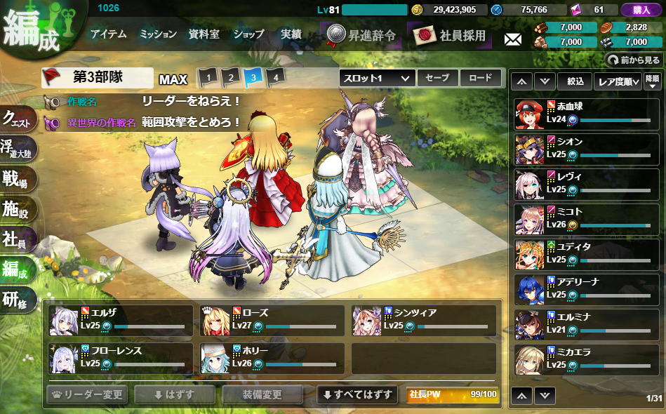 なお、あとでエリエは無理やり第1部隊に入れました。(後述)