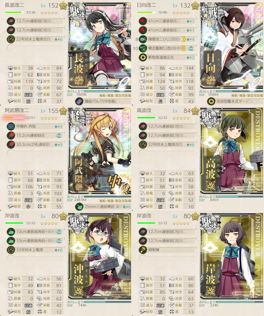 長波サマ旗艦、大鳳、熊野航改二、高波、沖波、岸波でした。