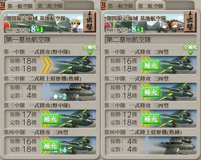 それぞれ基地航空隊の制空削り込みで本隊航空優勢見込みです。