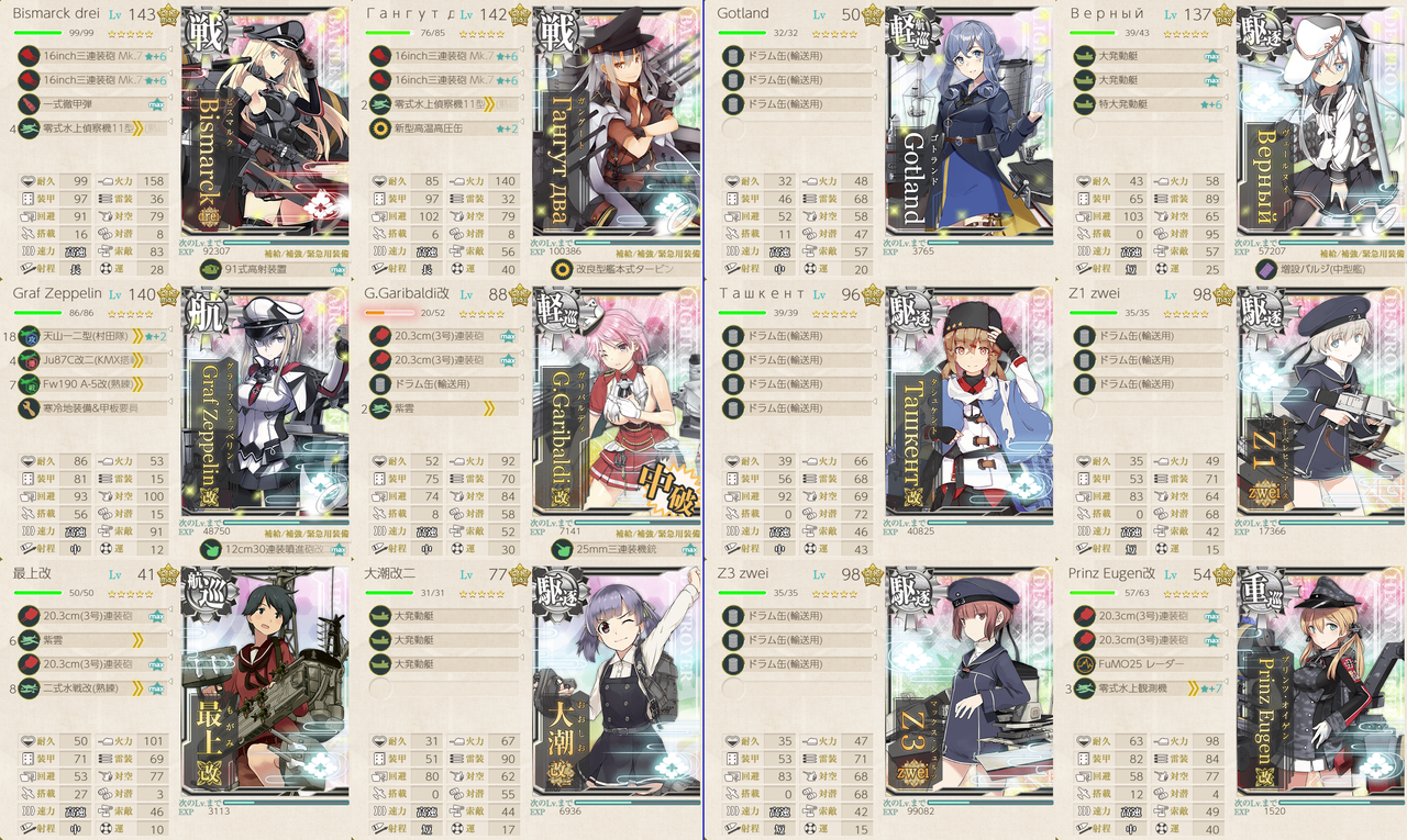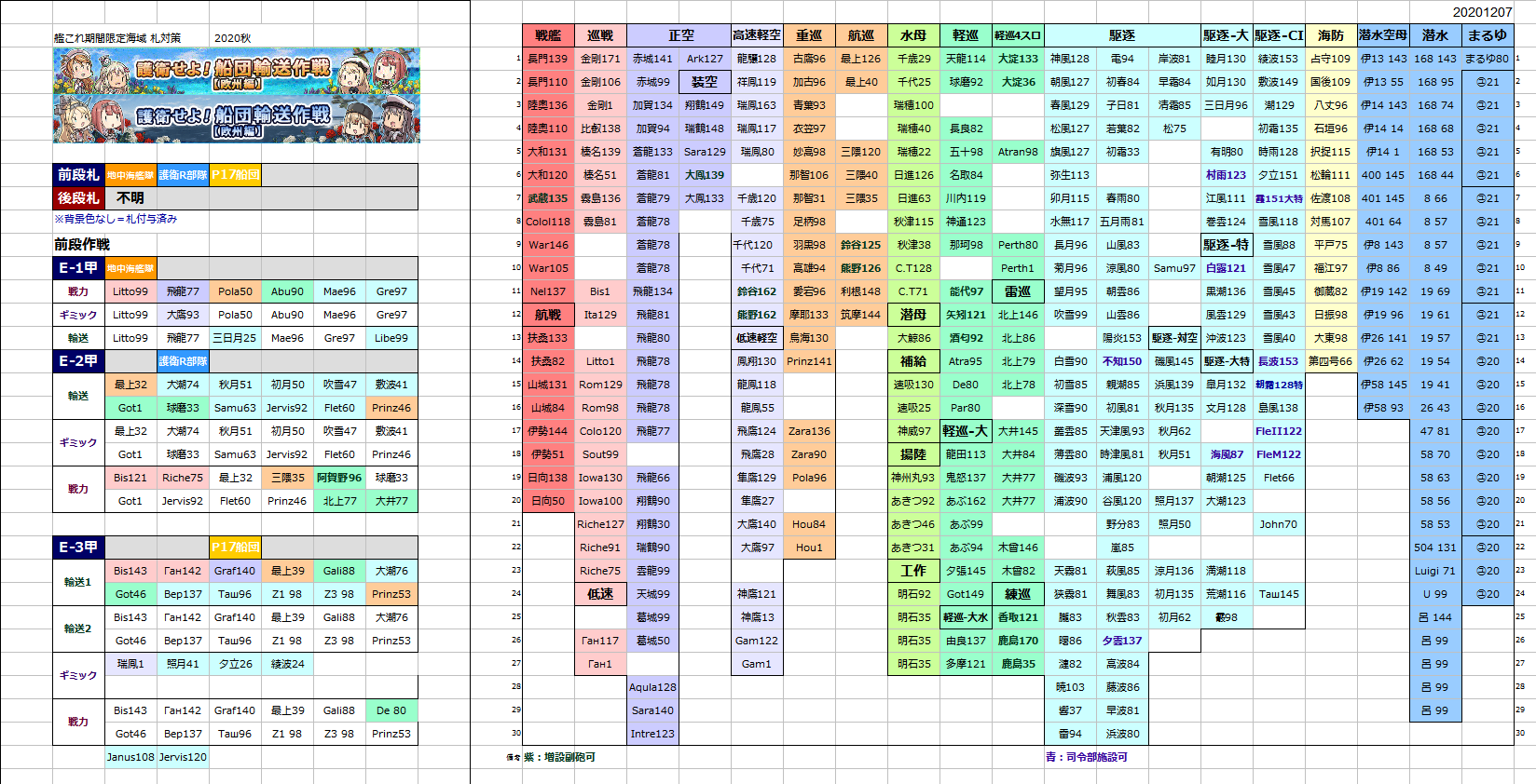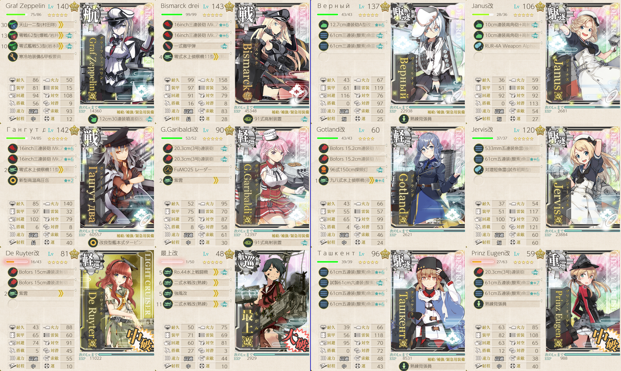 E-4どうなることやら。前段での新艦掘りは運良く終えたので、特にこれ以上の前段周回の予定はありません。