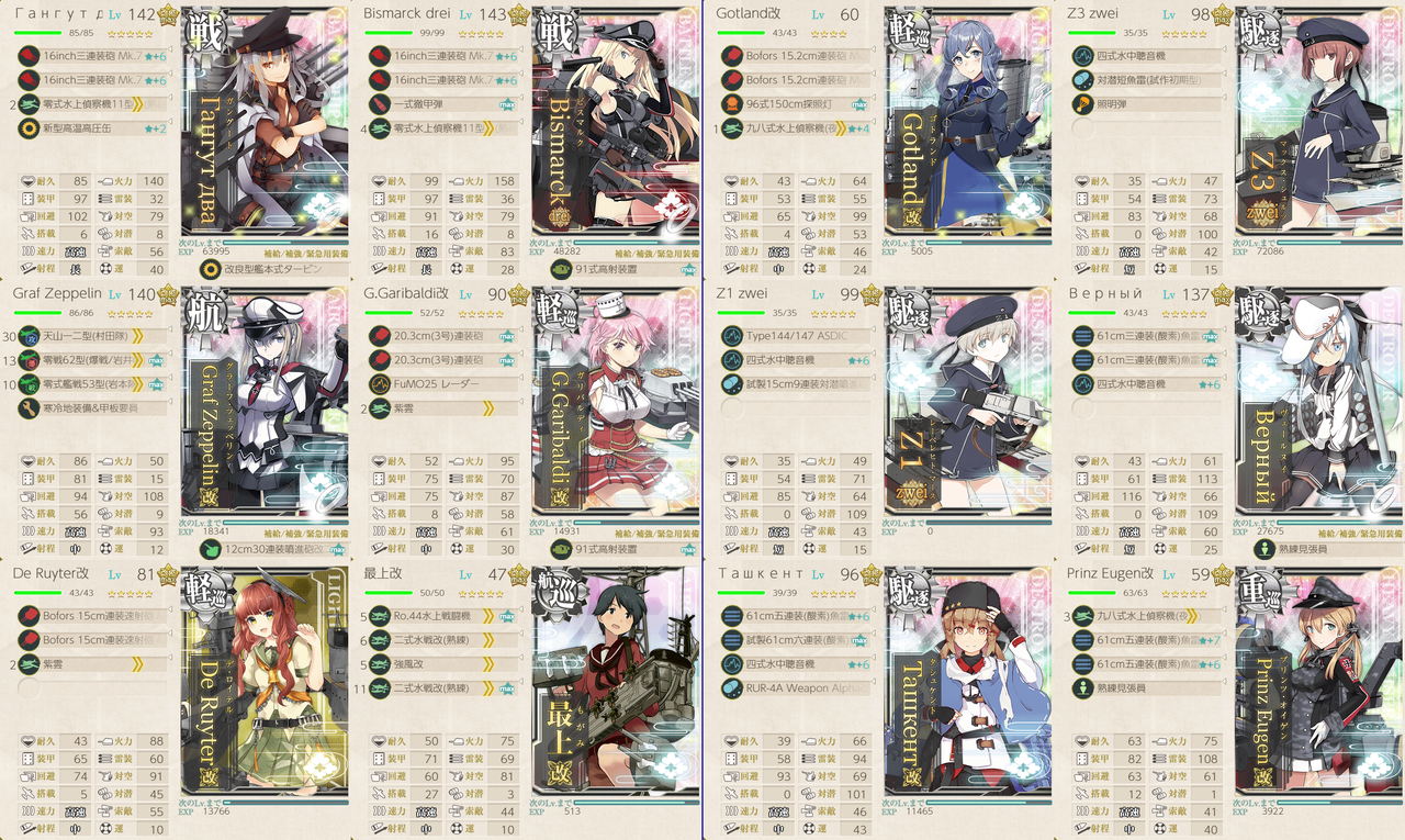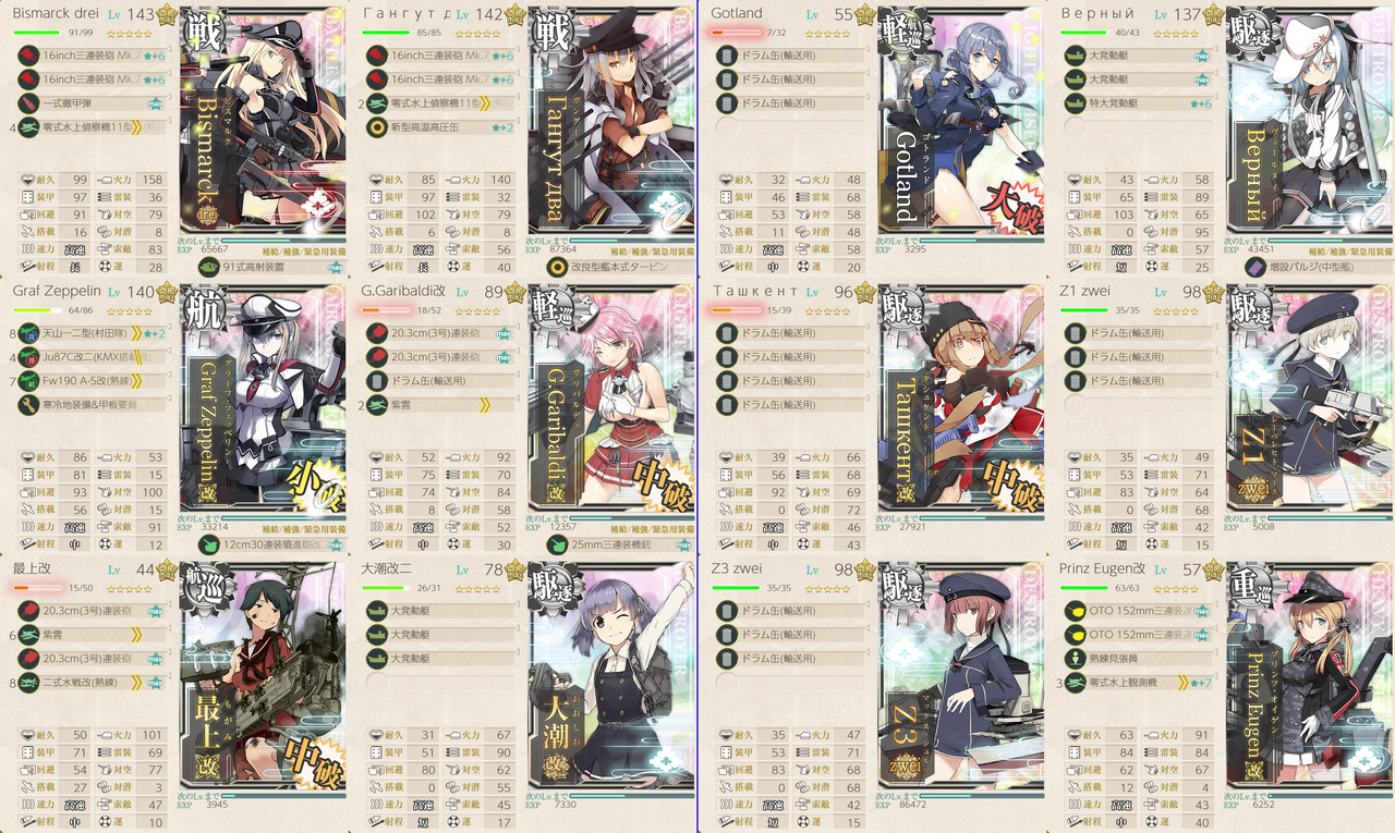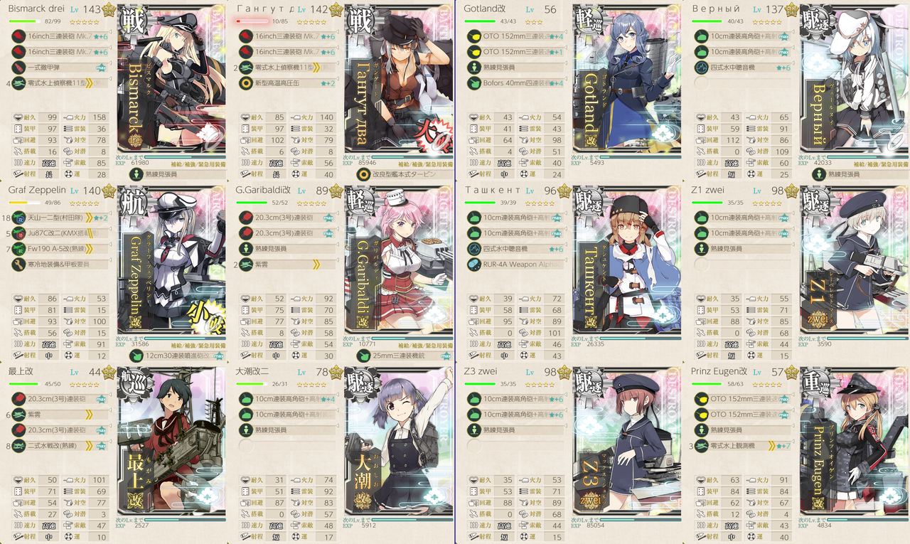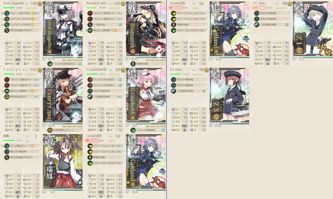 E-4どうなることやら。前段での新艦掘りは運良く終えたので、特にこれ以上の前段周回の予定はありません。