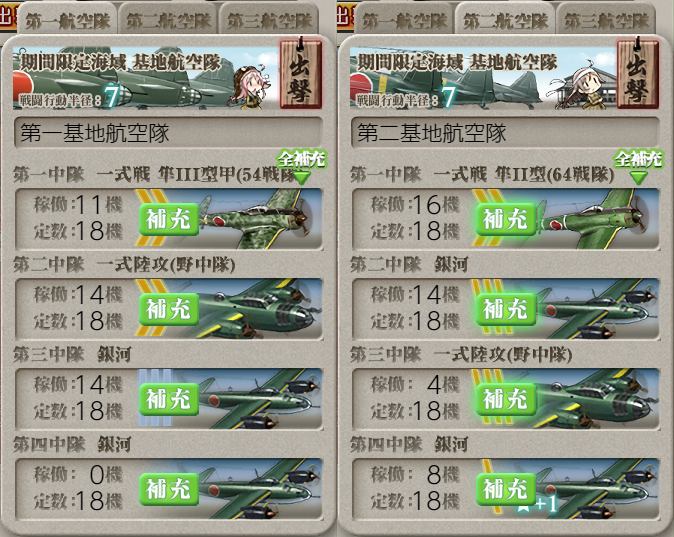 最終編成でも基地航空隊でしっかり制空を削れば、実質3スロとなったグラーフでも優勢に持ち込めます。
