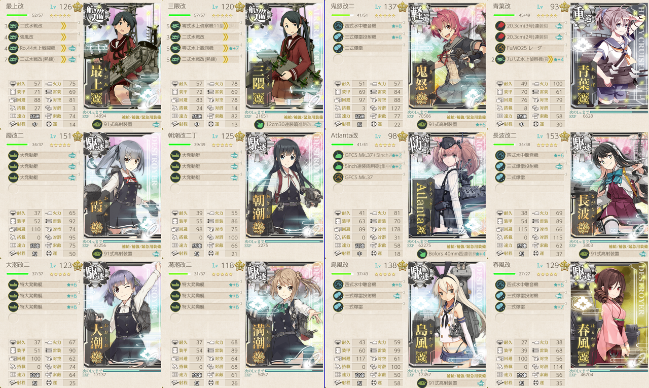 フレッチャーを採用する場合は、対潜火力が薄くならないようにしましょう。