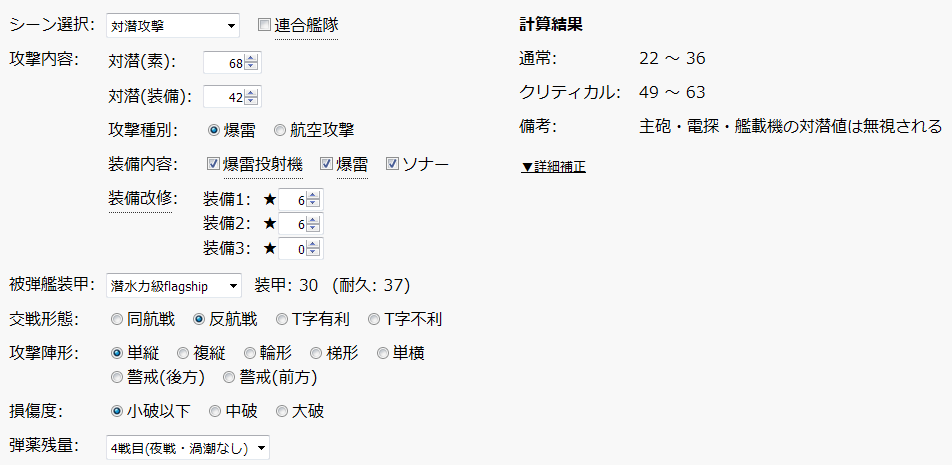 なお、手間を考慮しなければ、先制雷撃前の撃破については対潜哨戒支援の併用が最も確実と見られます。(対潜支援哨戒の命中率は高くないため併用としておきます。)